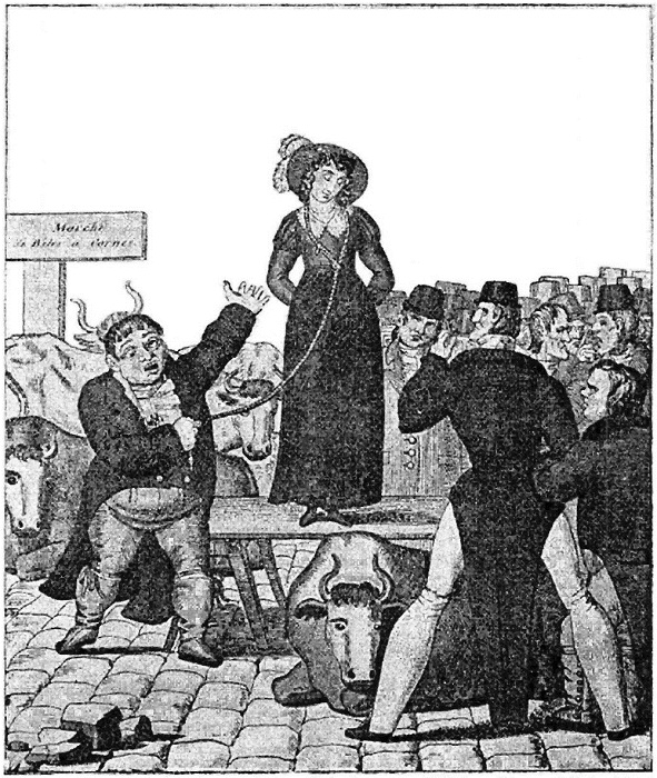 Наибольшей популярностью эта практика пользовалась в период с 1780 по 1850 год. А началось все с того, что в Англии в 1753 году приняли Закон о браке (до этого момента союзы мужчины и женщины не регистрировались). После вступления закона в силу официальный развод стал очень дорогим удовольствием, расторгнуть брак могли себе позволить только состоятельные люди. И продажа жен на площади стала самым простым способом, чтобы избавиться друг от друга. Власти это не одобряли, но почти всегда закрывали глаза.