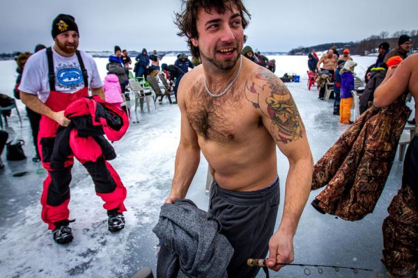 Победителям достаются ценные призы от спонсоров: телевизоры, наборы клюшек для гольфа или, например, ледовый бур. В этом году победителем рыбалки с обнаженным торсом стал Эндрю Фитчес из Оттавы.