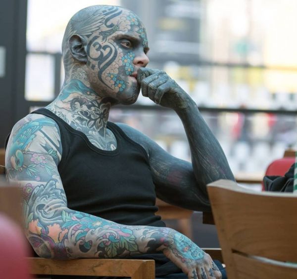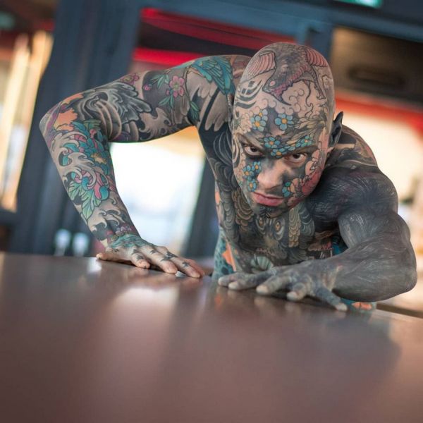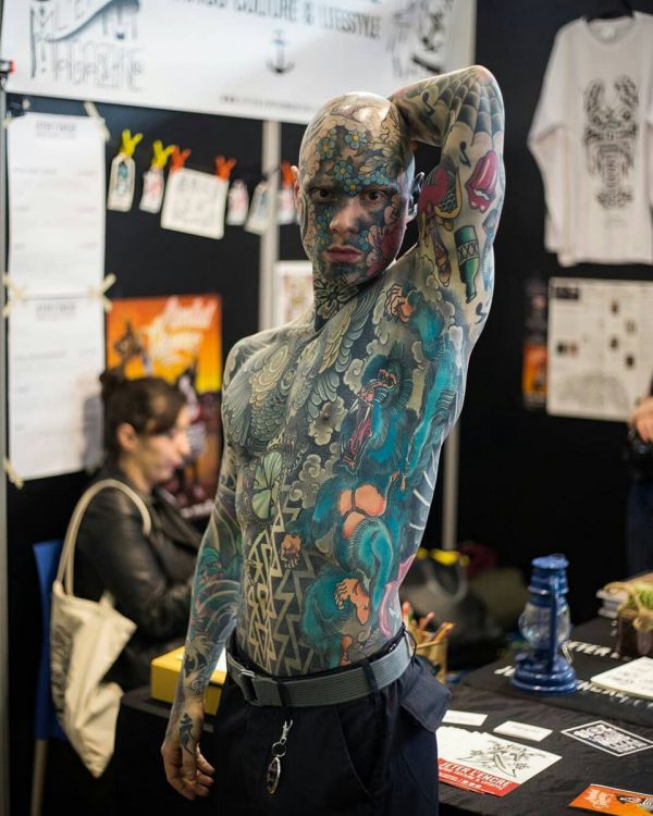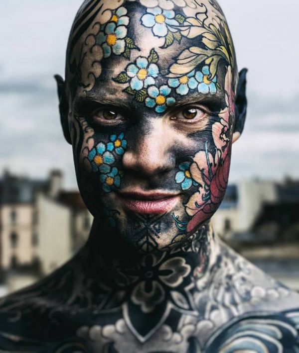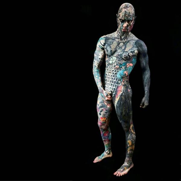 В возрасте 27 лет учитель начальных классов, Сильвен Хелэйн, сделал себе первую татуировку. Это произошло, когда педагог переехал из Парижа в Лондон, и увидел, что у многих британцев есть тату. В течение следующих четырех лет Сильвен продолжал забивать себя чернилами и в итоге на нем не осталось живого места — все его тело, включая гениталии, десна и череп, покрыто татуировками.