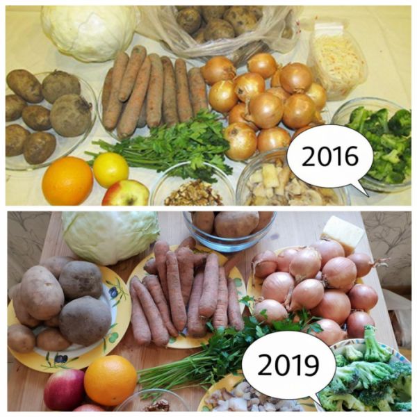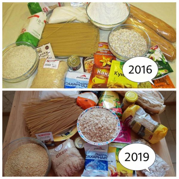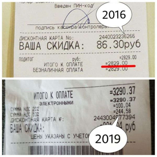 Итак, у нее был определенный список продуктов (достаточно обширный) который она покупала в 2016 году и сохранился чек. Теперь она тоже самое решила купить в 2019 году.