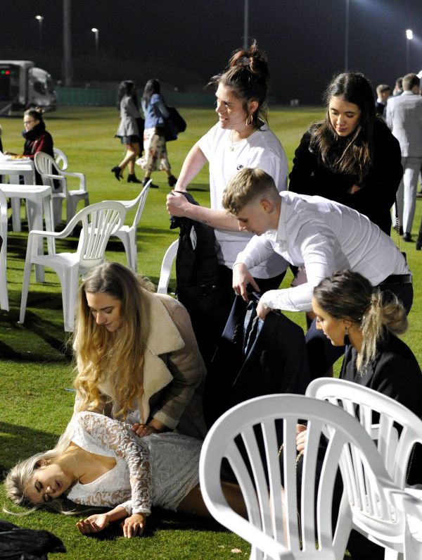 Тысячи студентов собрались на ипподроме в Ньюкасле на шумную вечеринку, продолжавшуюся всю ночь. Организаторы мероприятия установили ярмарочные аттракционы, а на открытой сцене была музыка с ди-джеями. Но молодежь больше интересовала выпивка, чем культурная программа. Изрядно заправившись пивом, вином и шампанским, молодые люди падали со стульев, даже не в состоянии сидеть.