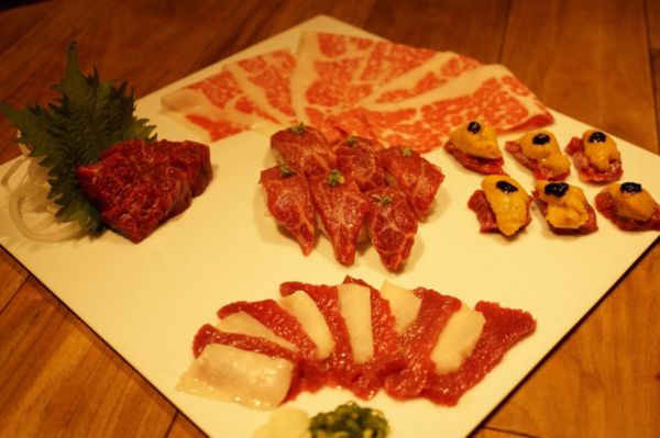 Басаси. Это блюдо представляет из себя кусочки нарезанной сырой конины.
