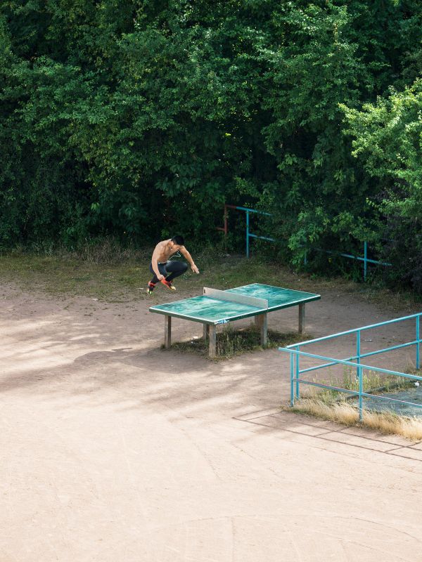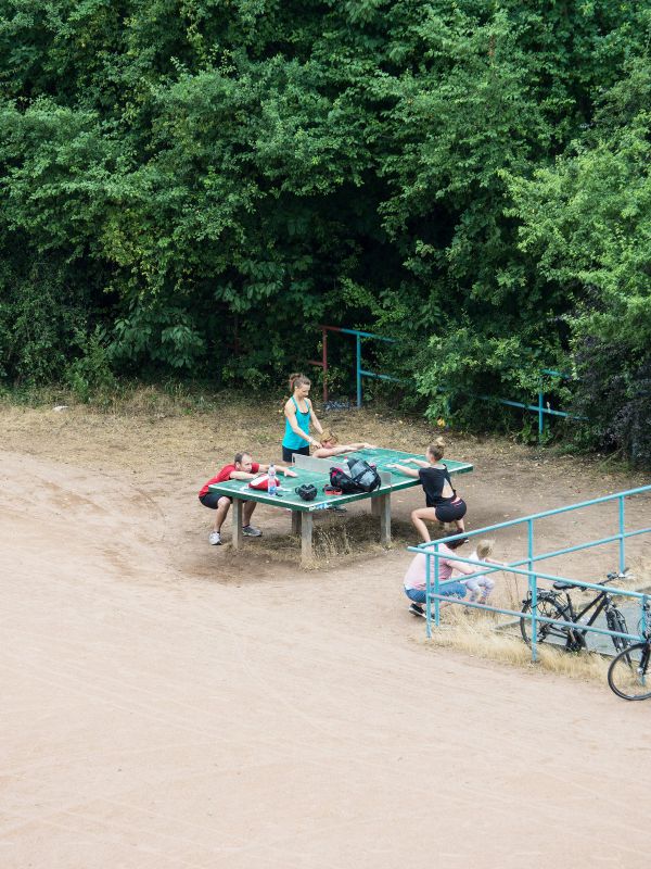Японский Фотограф Хаяхиса Томиясу (Hayahisa Tomiyasu) на протяжении пяти лет снимал стол для пинг-понга из окна своей комнаты в студенческом общежитии Лейпцига. Стол использовали для чего угодно: на нем загорали, спали, обедали, стригли собак, кроме непосредственной игры в теннис.