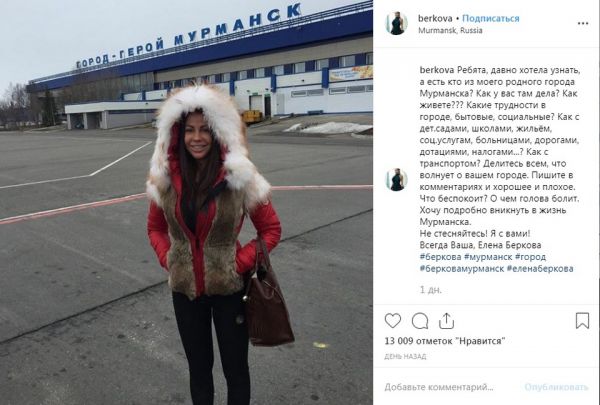 «Как живете? Какие трудности в городе, бытовые, социальные? Как с детскими садами, школами, жильем, социальными услугам, больницами, дорогами, дотациями, налогами? Как с транспортом? Делитесь всем, что волнует. Пишите в комментариях и хорошее, и плохое. Что беспокоит? О чем голова болит. Хочу подробно вникнуть в жизнь Мурманска», — написала Елена, желая стать ближе к местным гражданам.