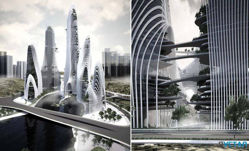 Бельгийский архитектор Винсент Каллебо известен своим дизайном, который черпает вдохновение из природных форм, вроде плавающих городов в форме лотоса. В этот раз он представил вертикальный город Шэнчьжень в Китае, сделанный в виде кэрнов, или каменных пирамид. «Задача в создании благоприятной городской среды с нулевым уровнем выбросов углерода и позитивной энергетикой», — говорит архитектор. В этом проекте город должен жить по законам джунглей, быть высокоплотным и обладать садами и огородами, устроенными прямо в жилых башнях. Каждая башня содержит 20 остекленных «камешков», покрытых солнечными батареями и ветряными турбинами.