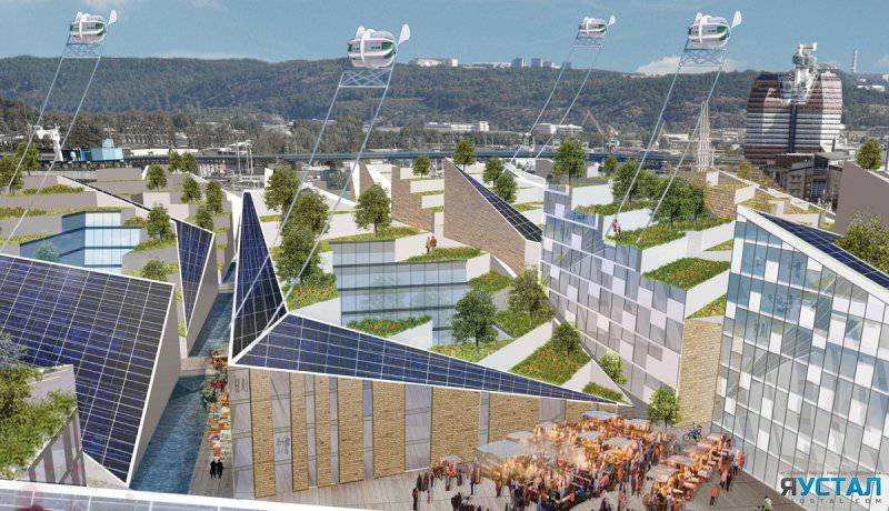 Шведский Гетеборг может быть еще зеленее, как считает Kjellgren Kaminsky Architecture. Сверхплотная застройка сделает Гетеборг самодостаточным по части энергии и еды. На крышах разместятся ветряные мельницы для выращивания еды и солнечные батареи для выработки электричества. Плотная застройка снижает дорожный трафик, и река становится более значимым средством для транспортировки.