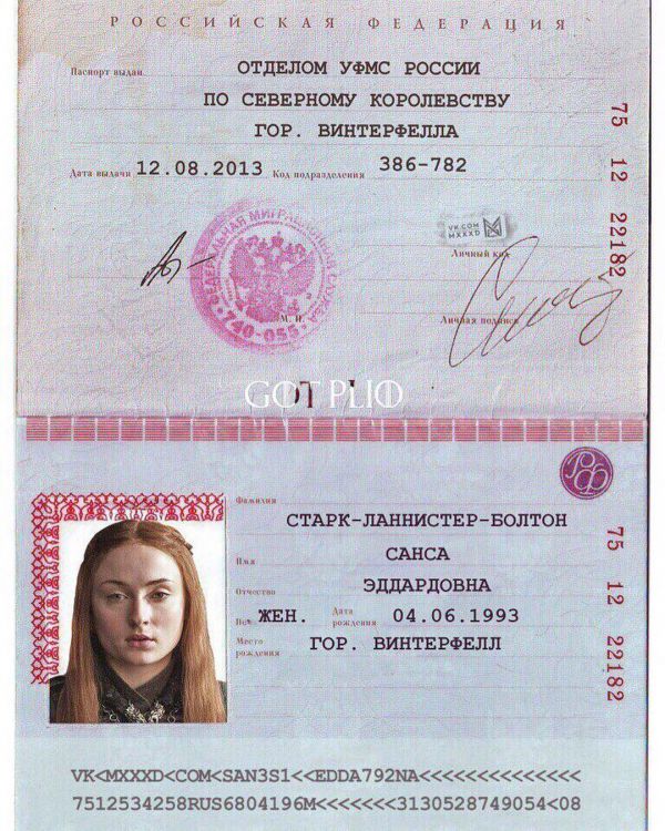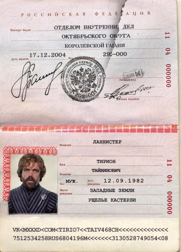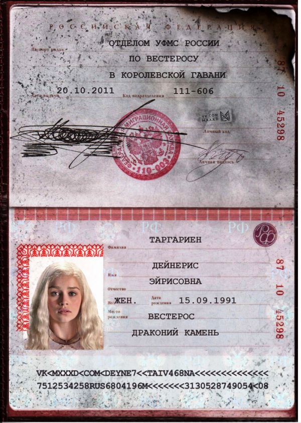 Если бы у главных героев «Игры Престолов» был российский паспорт