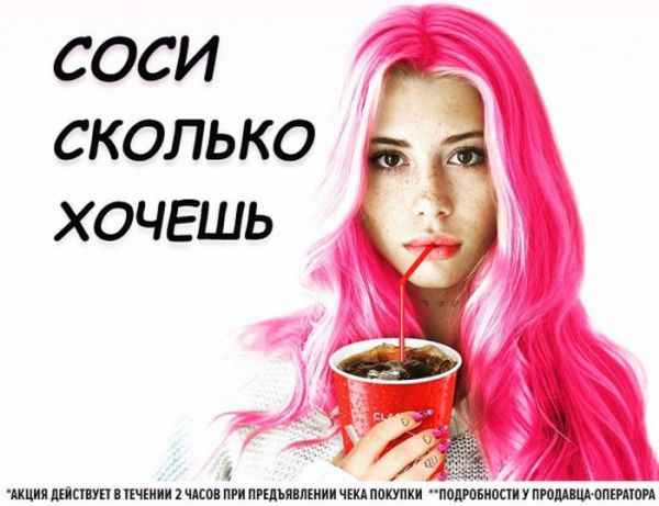 Баннеры с надписями были размещены в социальных сетях. Многих покоробили двусмысленные фразы на фоне фотографии девушки "Соси сколько хочешь" и "Бери в рот за копейки", мотивирующие покупателей бесплатно доливать напитки и приобретать бургеры по доступной цене.