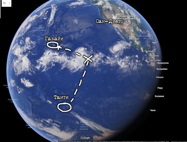 Маршрут дрейфа по Тихому океану, который длился 41 день.