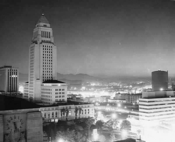 На фото здание Times Mirror Building, Лос-Анджелес, 1 марта 1955 года