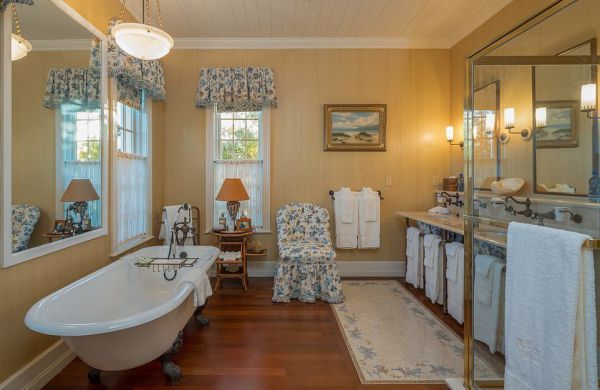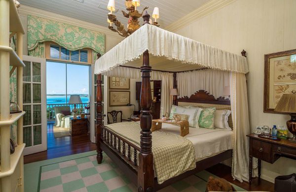 На шикарных снимках, сделанных внутри дома, можно увидеть кровати с балдахинами, элегантные ванные комнаты и просторные жилые зоны, а также обширную площадку для отдыха и большой бассейн.
