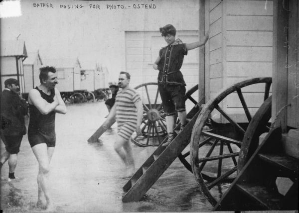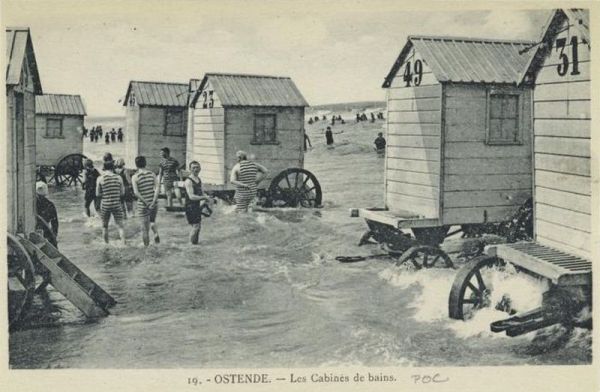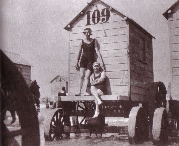 Какая-то ясность наступила только после изучения Википедии: Купа́льная маши́на (в России и Австро-Венгрии была известна как купальный фургон) — популярное в XVIII и XIX веках приспособление для купания на морских пляжах, позволявшее мужчинам и женщинам купаться, сохраняя правила приличия тех времен. Представляла собой крытую повозку с деревянными или брезентовыми стенками. Купальные машины были необходимой частью пляжного этикета, они скрывали купальщиков от посторонних глаз.