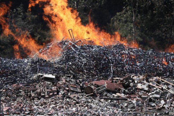 С бушующим огнем боролись пожарные сразу четырех округов. По их словам, «языки пламени поднимались прямо до небес», а температура в том месте была настолько высокой, что плавились даже фары на пожарных машинах. Спасателям удалось обуздать огонь, но они позволили ему полыхать еще как минимум день.