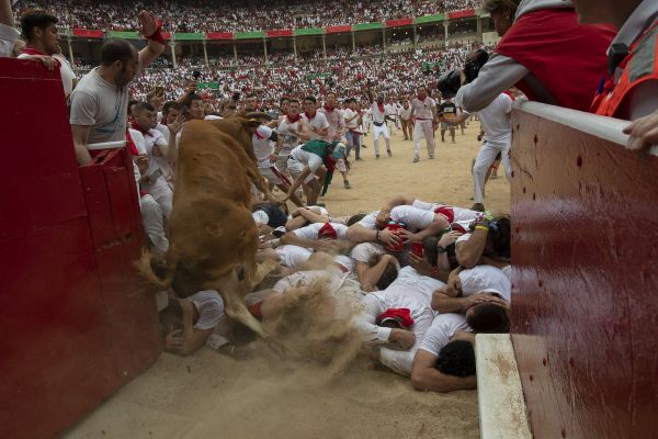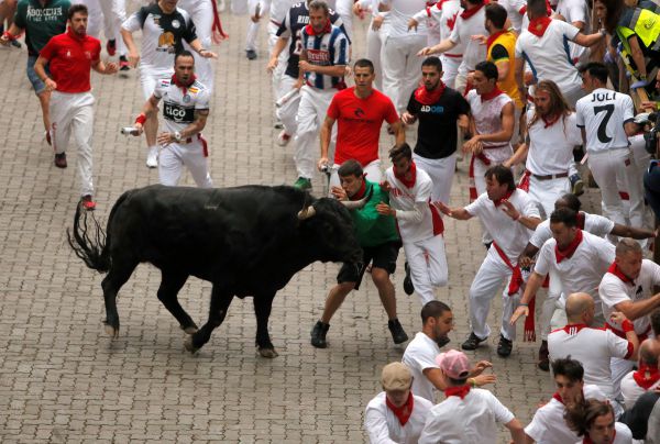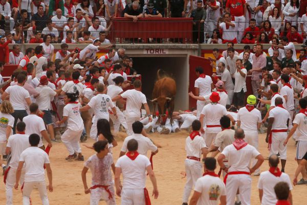 7 июля в рамках фестиваля Сан-Фермин в испанском городе Памплона прошел традиционный забег с быками. Рогатые знатно наваляли бегунам — в больницу с травмами различной степени тяжести доставили как минимум 5 человек, в том числе туристов из США. Кому не хватило отваги и слабоумия бежать перед быками, накидывались вином.