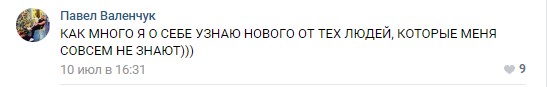 10 июля на стене популярного сообщества «Борщ» появилась публикация, которая, по мнению Павла Валенчука, «оскорбляет его честь и достоинство». Выглядит мем следующим образом: