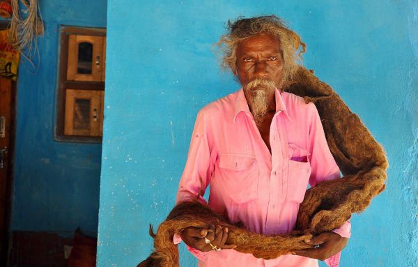 63-летний Сакал Дев Тудду (Sakal Dev Tuddu) из штата Бихар говорит, что его волосы спонтанно сплелись однажды ночью, когда он спал. Мужчина утверждает, что Бог посетил его во сне 40 лет назад и сказал ему никогда больше не стричь и не мыть голову. Соседи почитают его как святого, а бездетные пары индиец лечит своими домашними народными средствами.