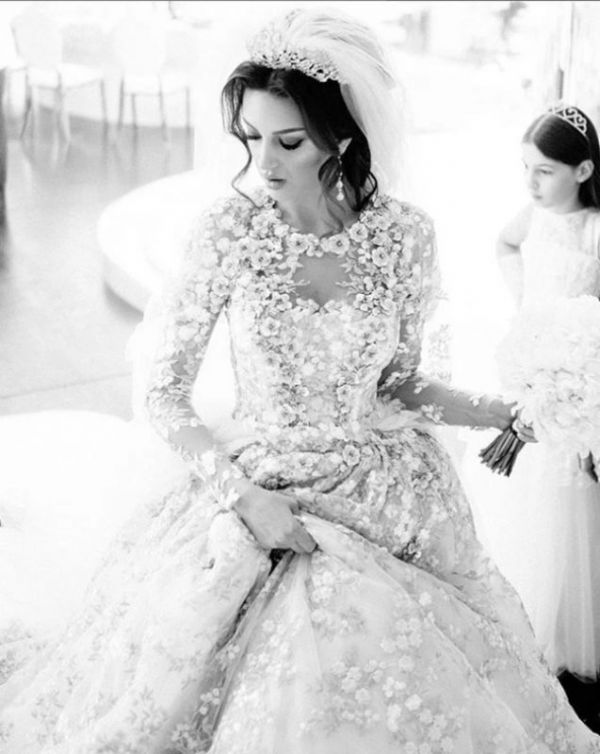 Прекрасная невеста была одета в потрясающее платье из шелка и кружев.