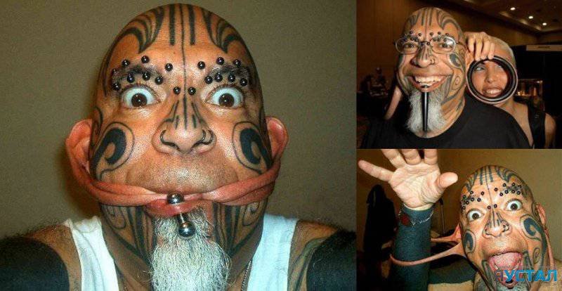Кала Каиви, безусловно, выглядит как настоящий мутант, однако всё его лицо — искусственное. 75% тела Каиви покрыто татуировками, а ещё у него проколот язык, под кожу лица вставлены многочисленные силиконовые имплантаты и растянуты мочки ушей и ноздри. По сравнению с другими людьми из нашего списка всё это может показаться довольно заурядным, но Каиви сделал ещё один большой шаг — в верхнюю часть его черепа ввинчены металлические шипы.