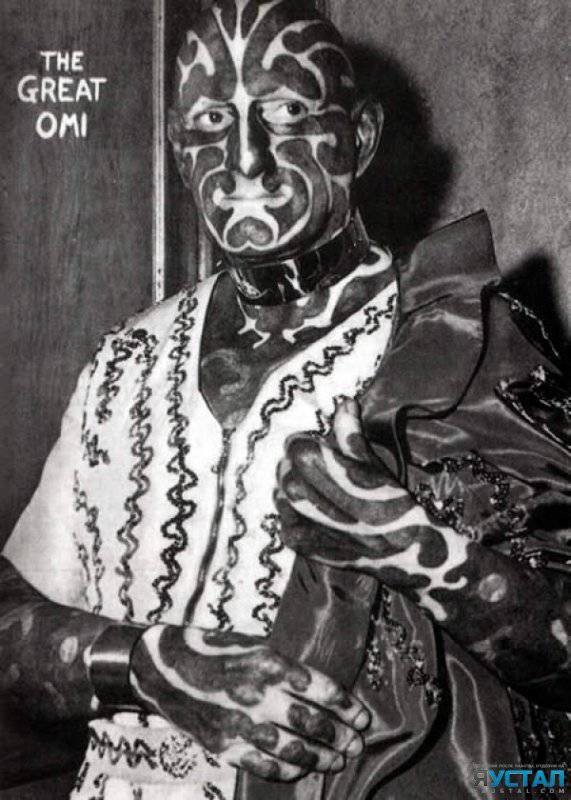 Хорас Ридлер был профессиональным уродцем и актёром интермедии. Известный также как Великий Оми или Человек-зебра, Ридлер легко выделялся из множества других татуированных людей, так как с ног до головы был покрыт чёрно-белыми полосами. Чтобы подчеркнуть свои татуировки, Ридлер красил губы и ногти в чёрный цвет.