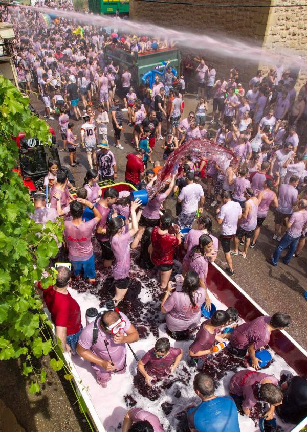 На протяжении 4 десятилетий в испанском Сан-Асенсио (Ла-Риоха) проходит битва вином «batalla del clarete». Во время мероприятия тысячи местных жителей и туристов обильно поливают друг друга вином из разных видов «оружия», таких как ведра, водяные пистолеты и другие сосуды. В этом году никто не смог преодолеть мощь грузовика с брандспойтом, поливающего участников битвы вином под давлением. Всего во время праздника было израсходовано более 40 000 литров вина.