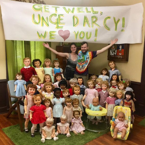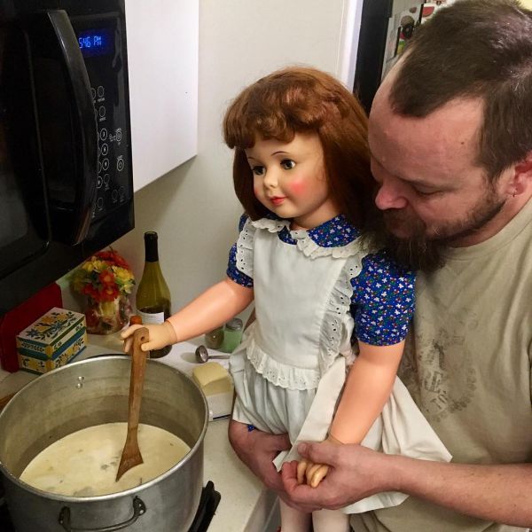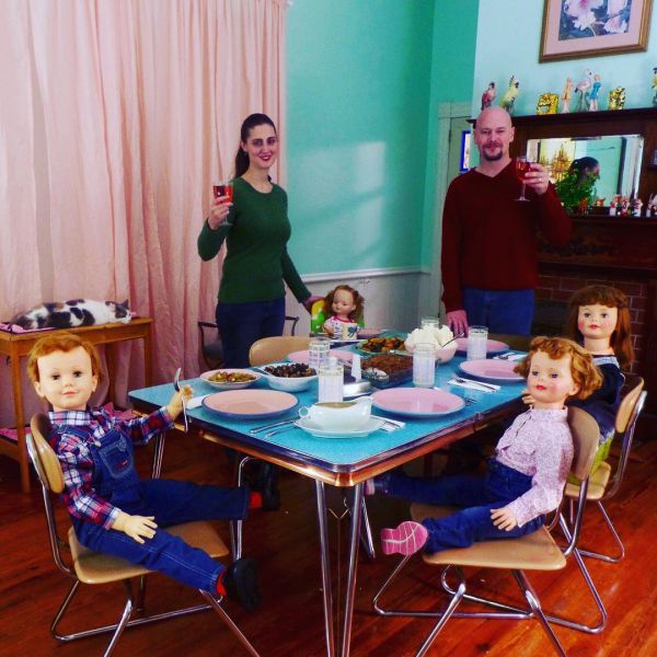 Супруги Мэдлин и Малачи Дрессел реставрировали и коллекционировали старых кукол. Как-то они обратили внимание на снимки друзей с их чадами в соцсетях и решили пошутить — запостили снимки в таком же духе, но с пластиковыми детьми (некоторым экспонатам, кстати, по 50-60 лет). Фото четы Дрессел тут же назвали жуткими, а их посчитали с приветом. Несмотря на негатив, супругам настолько понравились такие фото, что они наводнили Instagram снимками с "семейных" праздников, и теперь отправляют родственникам рождественские и пасхальные открытки со своими "детишками". Пара утверждает, что просто развлекается.