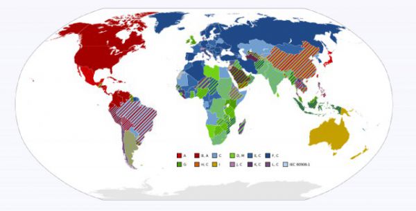 Согласно классификации Международной электротехнической комиссии, сегодня в мире используются 14 стандартных типов электрических розеток. Они обозначаются латинскими буквами от A до N. Каждый тип розетки может иметь несколько различных стандартов.