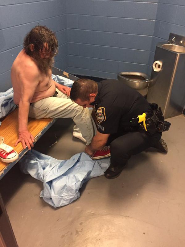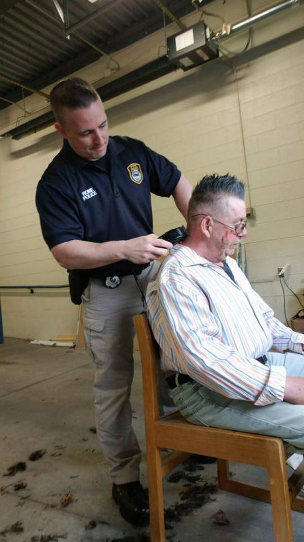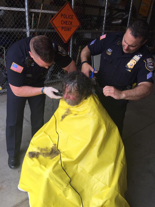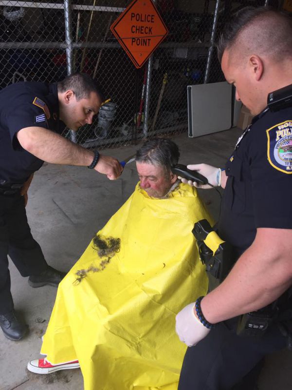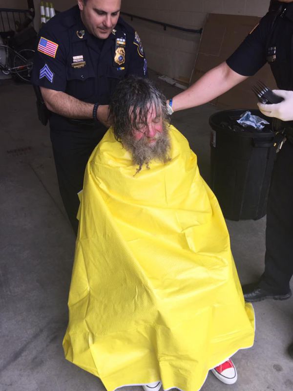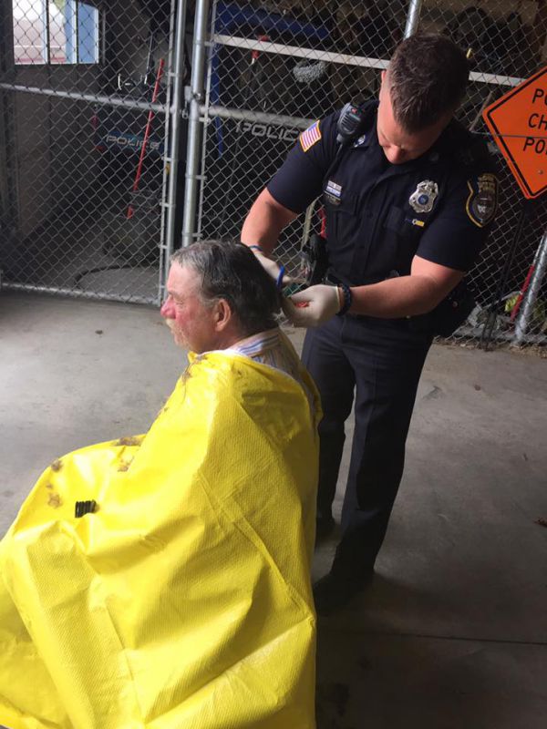 Полицейский решил помочь бездомному и отвез его в участок. Там Аарон с коллегами постригли мужчину, нашли ему чистую одежду и организовали душ.