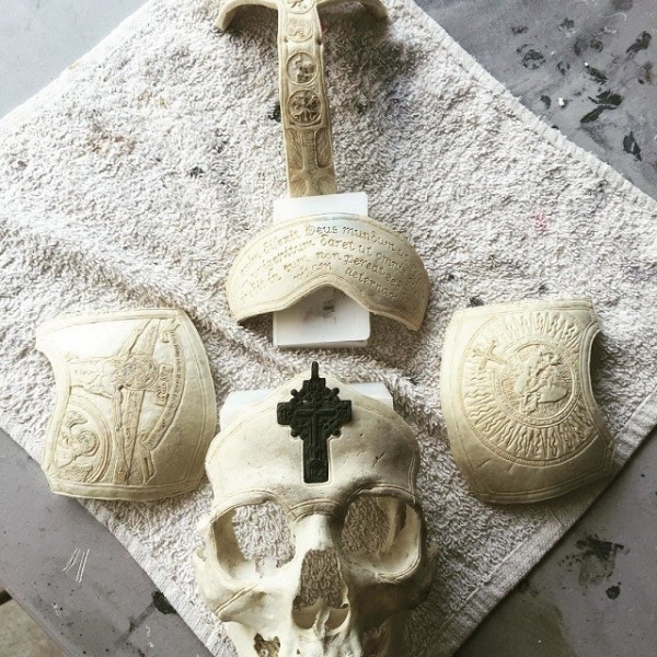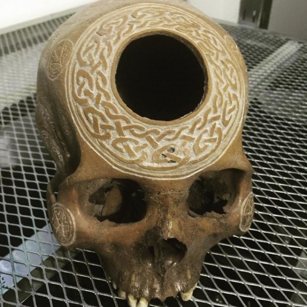 Художник активно ведет аккаунты в соцсетях, через которые рекламирует и продает свои необычные товары. Помимо черепов он делает трости, серьги и кольца. Давайте посмотрим на некоторые его творения.