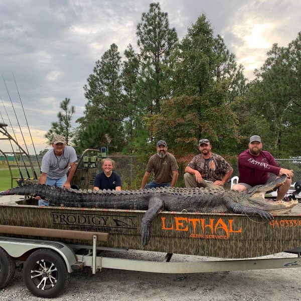 Огромный аллигатор был убит группой охотников в штате Джорджия, вероятно, установив новый рекорд для штата. Рептилия, пойманная в минувшее воскресенье, весила 700 фунтов (317,5 кг) и имела длину 14 футов и 1,74 дюйма (431 см), побив предыдущий рекорд, установленный в 2013 году. Тот аллигатор был 13 футов 10 дюймов длиной. Охотникам понадобилось около 5 часов, прежде чем им удалось убить рептилию. Мясо аллигатора съедят, а из кожи сделают чучело.