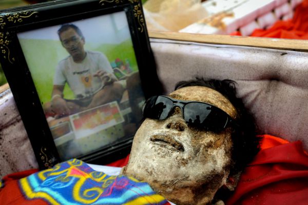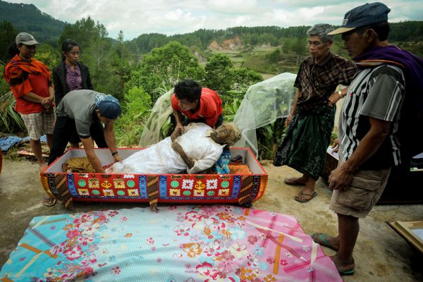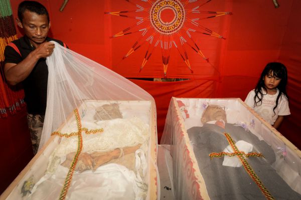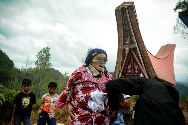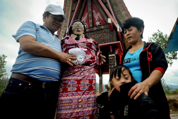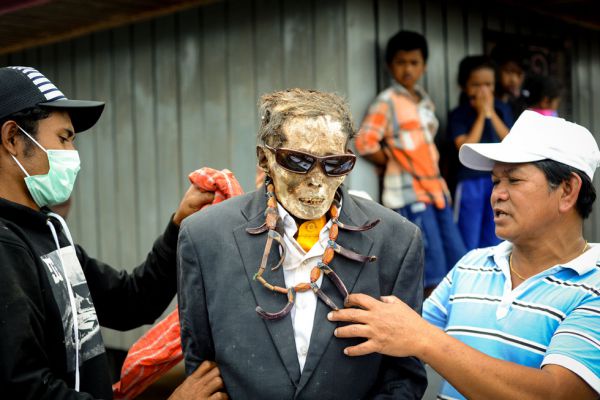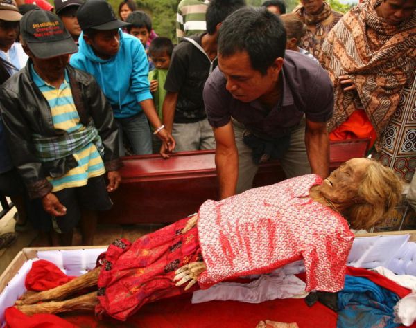 У народа тораджи, проживающего на о. Сулавеси в Индонезии, есть странная традиция. Они каждый год выкапывают умерших родственников, чистят, моют, переодивают, ремонтируют или заменяют гробы, а некоторым даже дают закурить. В тораджанской культуре смерть считается наиболее важным аспектом жизни, и в результате их погребальные ритуалы иногда могут занимать годы.