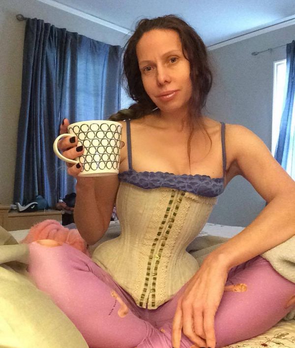 43-летняя художница Сара Вэт из Портленда, штат Орегон, с маниакальным упорством старается уменьшить свою талию, а потому носит корсет по 20 (!) часов в сутки. Американке удалось утянуть талию до 40 см, но ей этого мало, ведь она намерена уменьшить ее до мирового рекорда в 38 см. Муж всячески ее поддерживает.