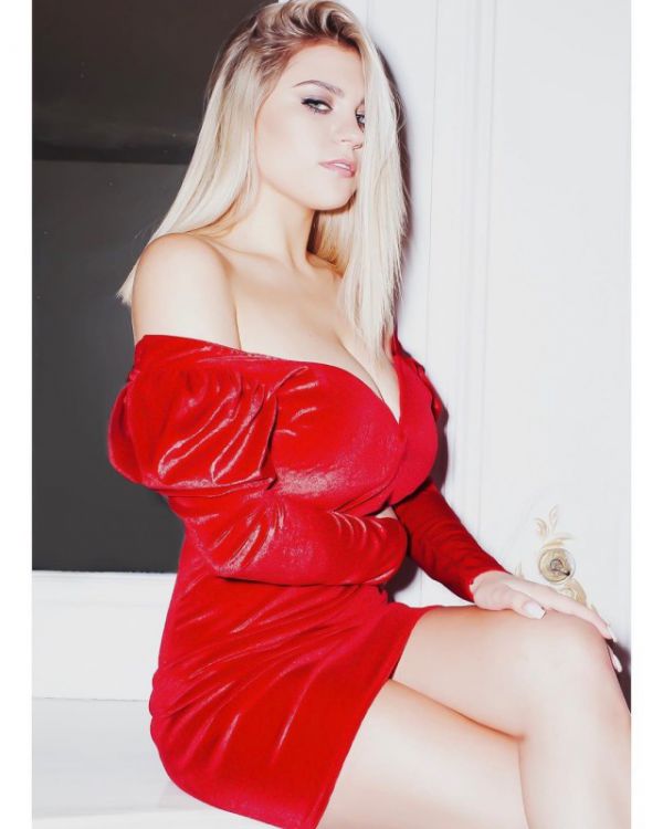 Внучка Д’Артаньяна превратилась в настоящую "роковую леди", примерив ярко-красное мини-платье. Девушка позировала, отбросив светлые волосы набок, показав стройные ноги и эффектное декольте.
