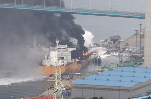Примерно в 10 ч. 50 м. по местному времени в Ульсане на 25000-тонном судне Stolt Groenland вспыхнуло облако огня в виде гриба.