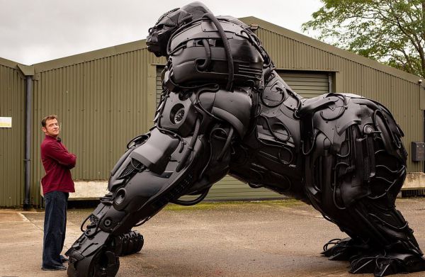 Скульптор создал огромную гориллу из выброшенных автомобильных деталей