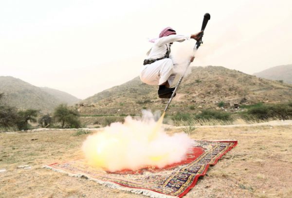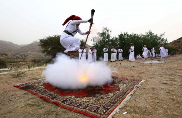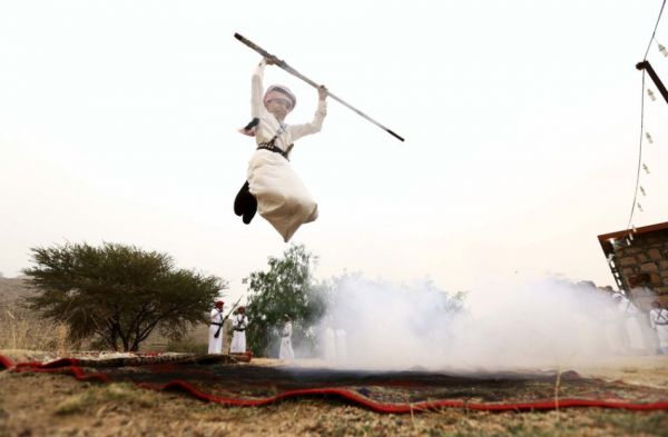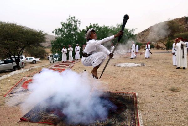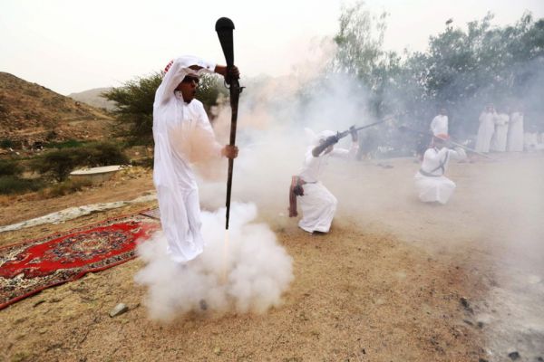 Надо отметить, что подобный ритуал в реальной жизни арабов встречается все меньше и меньше, в основном для привлечения туристов, посещающих Саудовскую Аравию. С этой целью устраиваются настоящие представления с участием нескольких мужчин. Для ритуальных танцев используются только старинные ружья, богато украшенные и инкрустированные вручную.