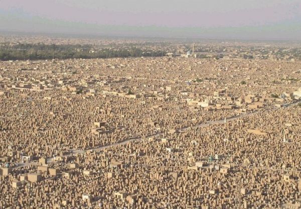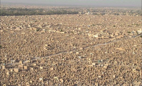 Во время своего вторжения в Ирак в 2003 году, а также в ходе оккупации американская армия не стеснялась наносить ракетные удары как по живым, так и по мёртвым — самое большое в мире кладбище на себе ощутило стремление США подарить Ираку демократию.