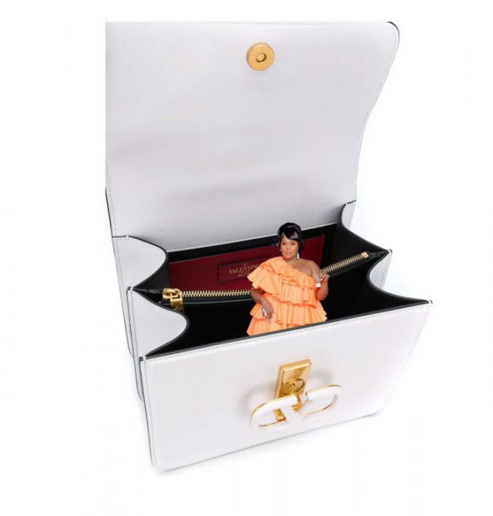 Свое фото с этим аксессуаром, опубликованное в инстаграме, Lizzo прокомментировала следующим незамысловатым образом:Эта сумочка отлично мне подходит. Я большая роскошная женщина, с головы до пят одетая в Valentino.