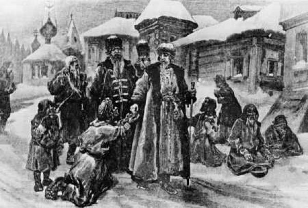 Ордынское нашествие и междоусобные войны в Средние века увеличили количество нищих на Руси во много раз. Этому способствовали и сожженные дома, и вытоптанные посевы. Скот был угнан, кормильцы погибли - их жены с малолетними детьми были вынуждены скитаться и просить милостыню. Сия чаша, кстати, не миновала и некогда состоятельных людей.В это время было принято на глухой стене дома делать нишу или полочку, в которой с вечера оставляли еду: кусок хлеба, немного молока или просто печеную репу. Такая тайная милость не оскорбляла стыдливости тех, кто еще недавно сам помогал нищим.