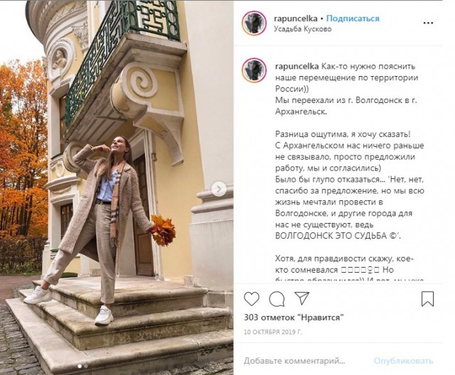 Свой переезд в Архангельск подписчикам матушка объяснила просто: «С Архангельском нас раньше ничего не связывало, просто предложили работу, мы и согласились. Было бы глупо отказаться…»