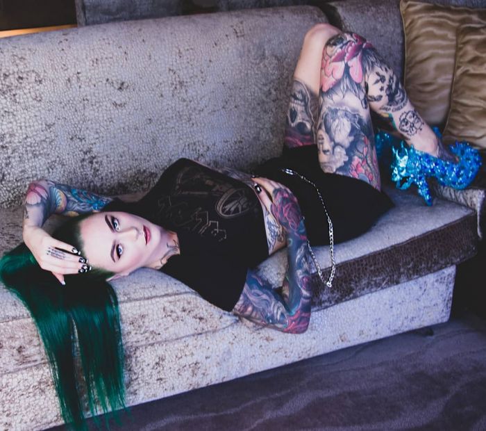 Около 15 лет Сара делает татуировки на разных частях тела, но до сих пор не привыкла к боли, которая сопровождает каждый сеанс. Однако, по словам девушки, конечный результат превосходит все ожидания и ради этого стоит немного потерпеть.