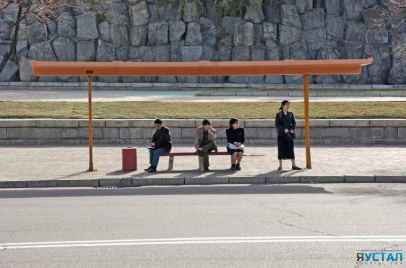Автобусная остановка в Северной Корее.