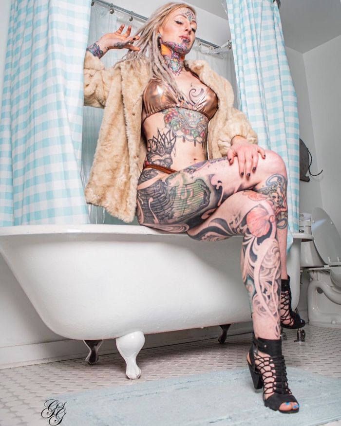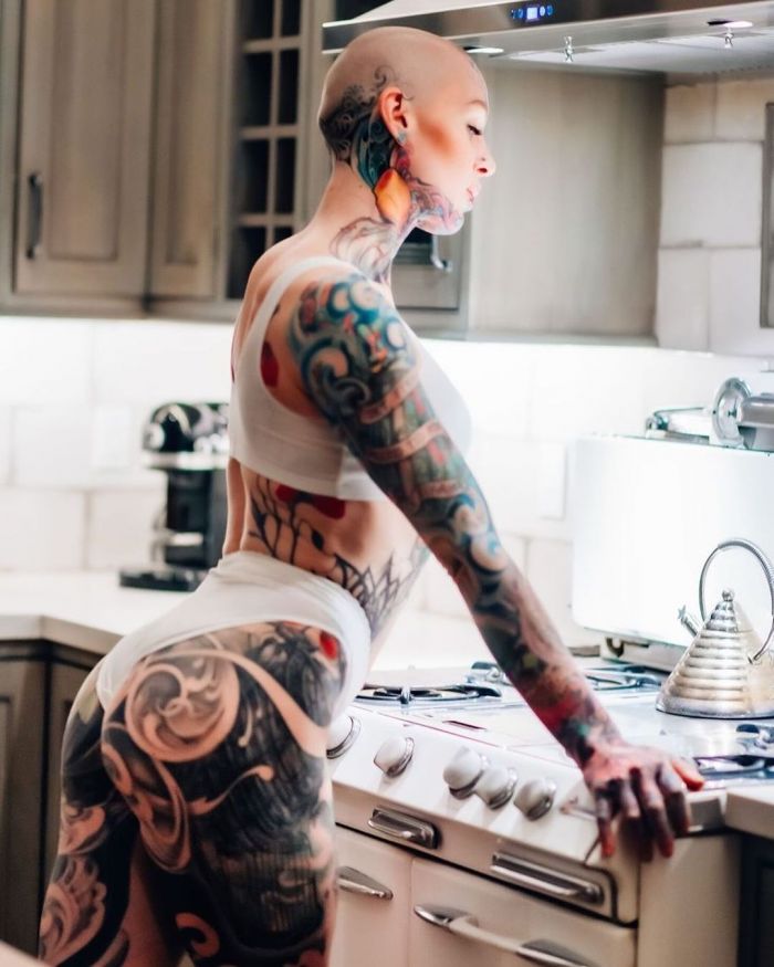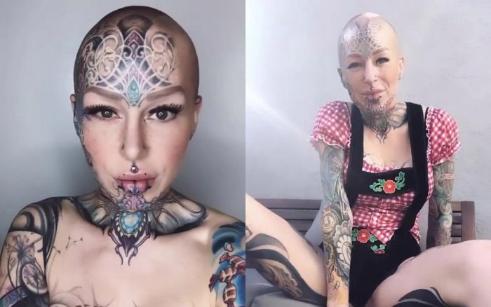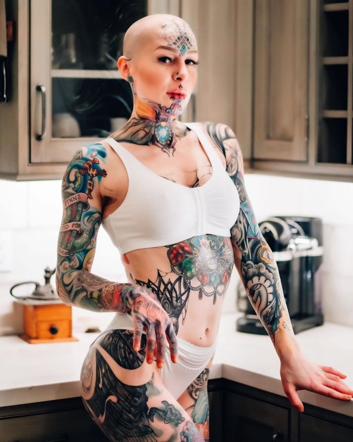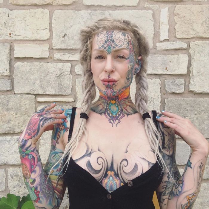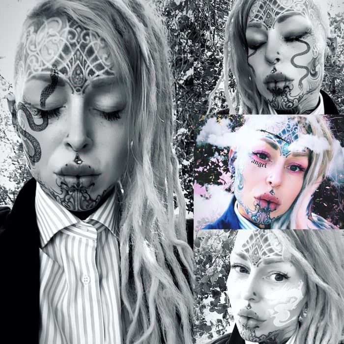 Дама хочет покрыть татуировками все тело и разделить свой язык пополам. На все модификации она уже потратила более $50 тыс.Теперь Лина переехала в Сан-Франциско, Калифорния, где пробует работать в качестве тату-модели.