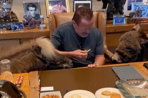 О новом друге Железного Арни его поклонники узнали после того, как актер опубликовал фото и видео в инстаграме. Шварценеггер пришел со своим новым другом в свой офис и познакомил его со всеми своими сотрудниками. В ролике видно, что актера и его осла сопровождает еще и пони, которая живет у Шварца достаточно давно.
