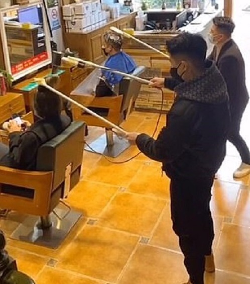 Китайские парикмахеры предохраняются от коронавируса как могут. Они носят маски, а инструменты — расчески, электробритвы и фены — прикрепляют к 1,5-метровым палкам, чтобы не приближаться к клиентам вплотную.«Конечно, инструментом на палке работать не так удобно, как если ты держишь его в руке, — признается Ву Чжунлон, парикмахер из провинции Хэнань. — Но мы делаем это ради собственной безопасности и безопасности клиентов, чтобы защититься от вируса. Надеюсь, все это понимают».