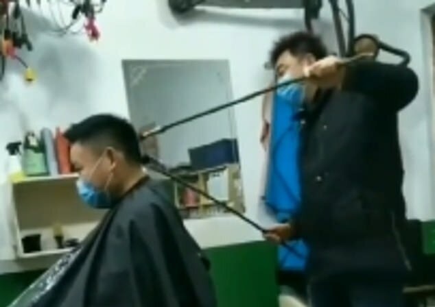 Еще один парикмахер, Хэ Бинг из города Лучжоу провинции Сычуань, опубликовал в китайских соцсетях видео, на котором его коллега стрижет клиента с помощью «дистанционной технологии».«Карантин закончен, но для безопасности нам нужно держаться на расстоянии друг от друга», — пишет он.