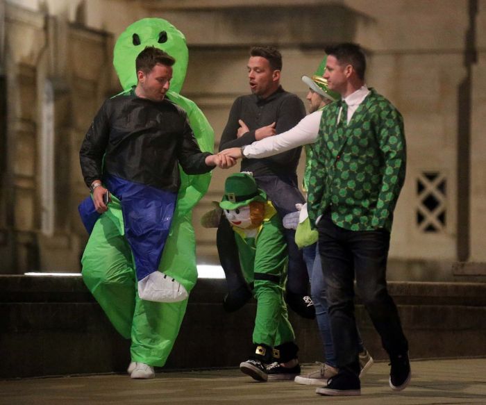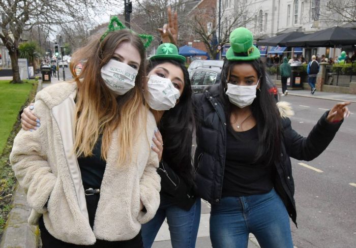 17 марта в Великобритании отметили ирландский культурный и религиозный праздник День святого Патрика. Любители выпить в этот день проигнорировали призывы правительства избегать баров и практиковать "социальное дистанцирование" во время празднования национального праздника Ирландии. Смельчаки облачились в наряды и шляпы зеленого цвета, и отправились на городские улицы. Некоторые люди просто гуляли, а другие пошли в пабы и бары, которые еще не закрыли из-за мер предосторожности, связанных с эпидемией.