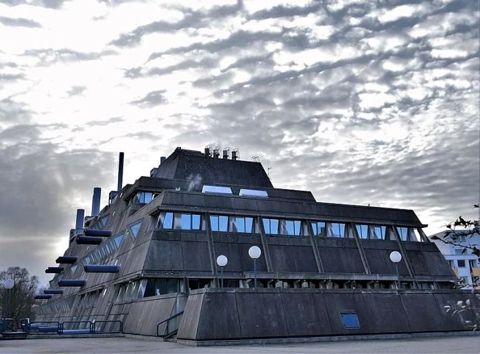 Таким образом, авторы проекта сумели вписать все функциональные детали в общую концепцию фасада здания, выполненного в редком ныне архитектурном стиле брутализма. Вот только процесс строительства сооружения оказался настолько же примечательным, насколько был создан фасад сооружения, однако с неприятным осадком. Возводить монструозное здание начали в 1971 году, но работы затянулись на долгое десятилетие.Более того: за эти годы окончательная стоимость строительства выросла аж в тридцать раз - с четырех до ста двадцати миллионов дойчмарок. Причиной этого скачка цифр в смете были поистине колоссальные размеры казнокрадство и хищение средств.