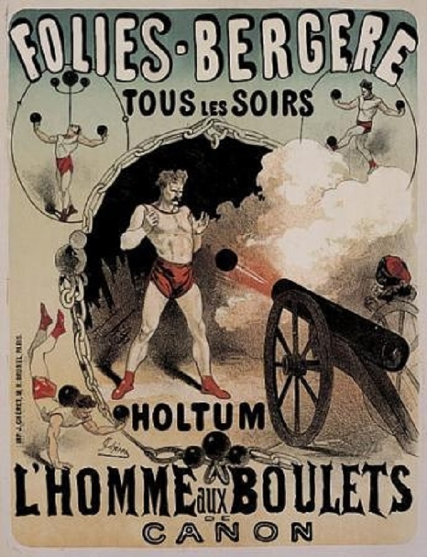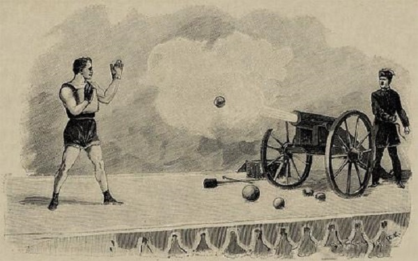 Во второй половине 19-го — первой половине 20-го веков силачей в цирках было видимо-невидимо. Чтобы сделать себе имя, надо было выдумать нечто, что никто ранее не вытворял. Джон Холтум решил не просто играться с тяжестями, а ловить их. Причем не просто увесистые предметы, а ядра, коими стреляют из пушек.