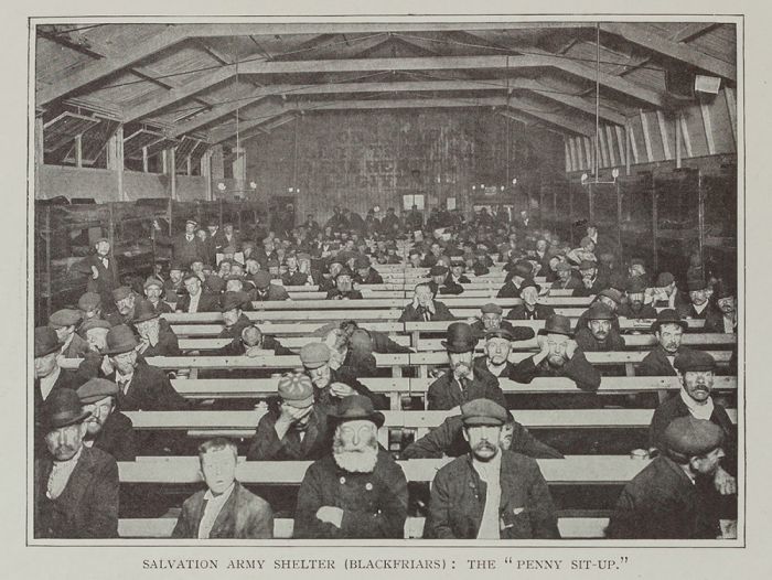В поисках заработка жители деревень и маленьких городов отправлялись в столицу, но найти достойно оплачиваемую работу было крайне тяжело: из-за огромного притока рабочей силы (в 19-м веке население Лондона увеличилось в три раза) физический труд оценивался крайне дешево. Тем не менее многие бедняки перебивались нерегулярными заработками: их нанимали для выбивания ковров, починки мебели, погрузки тяжестей и прочих мелких поручений. Снять койку и делить комнату с другими работягами почиталось за настоящее счастье. У многих же не хватало средств и на оплату крыши над головой. По этой причине улицы больших городов запрудили бездомные. За решение проблемы взялась «Армия Спасения»: эта христианская благотворительная организация возникла в Великобритании в 1865 году, её целью было облегчить жизнь самых бедных и бесправных слоёв населения. «Армия» предлагала своеобразное убежище для тех, кому некуда было пойти.