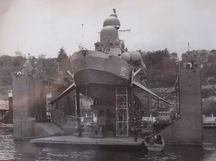 МРК проекта 1240 «Ураган» в сухом доке в Севастополе